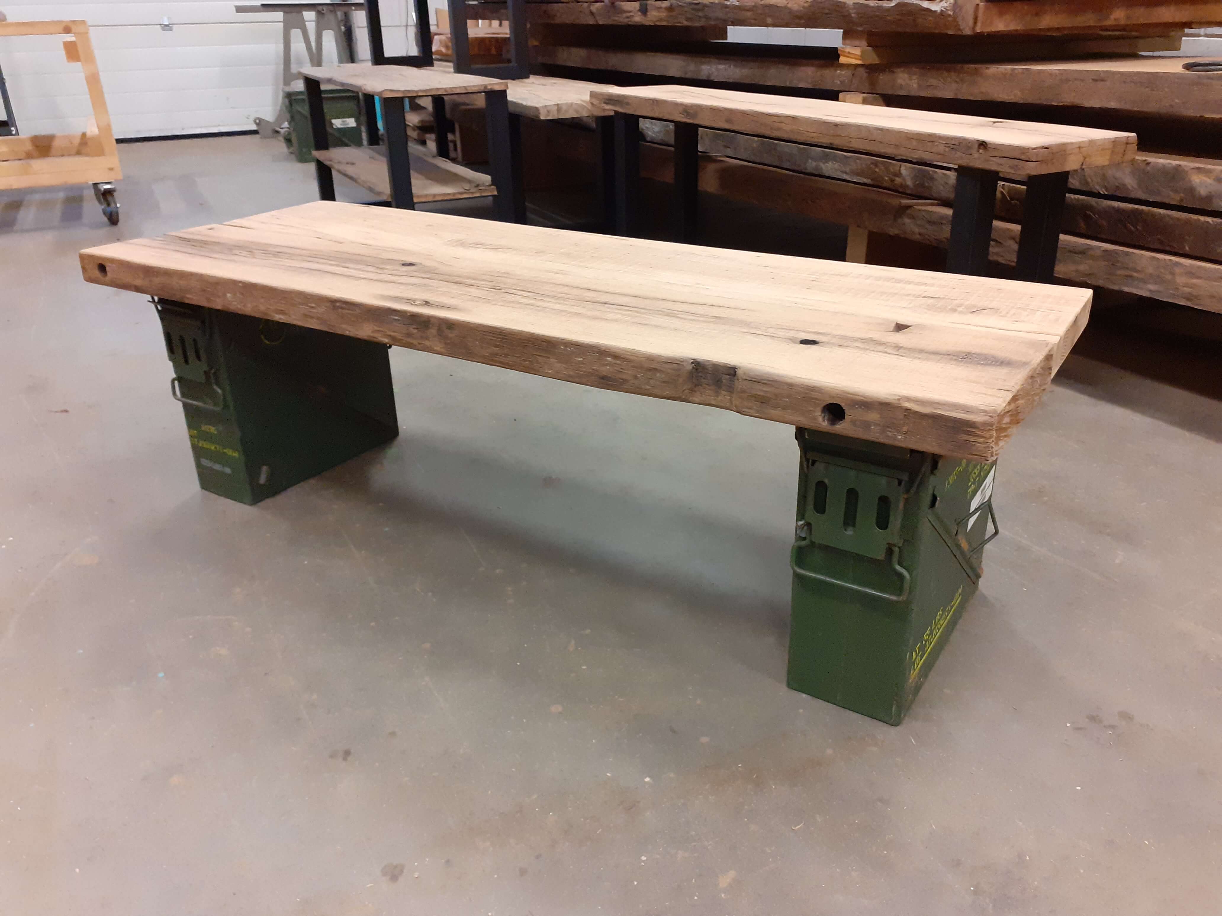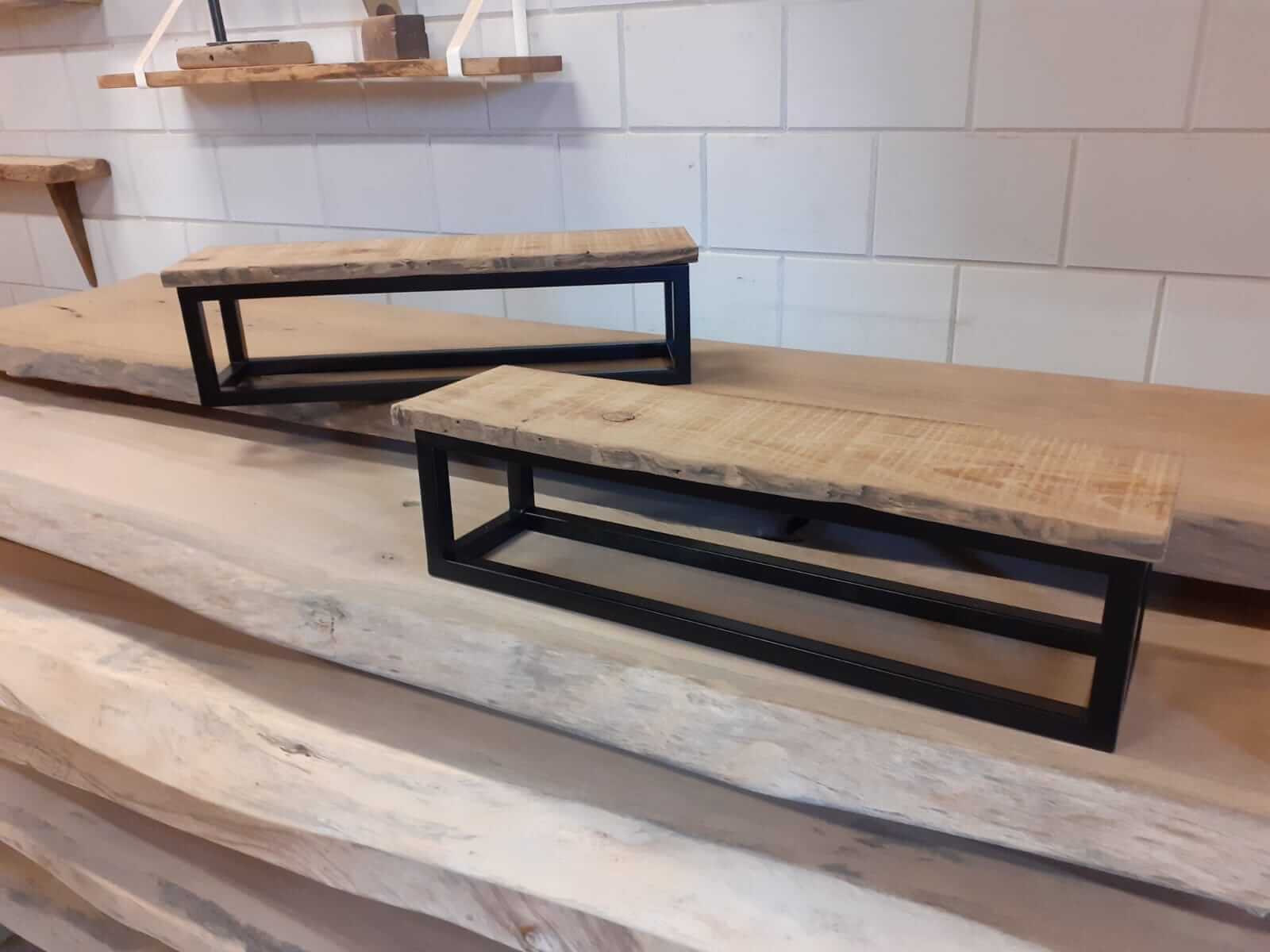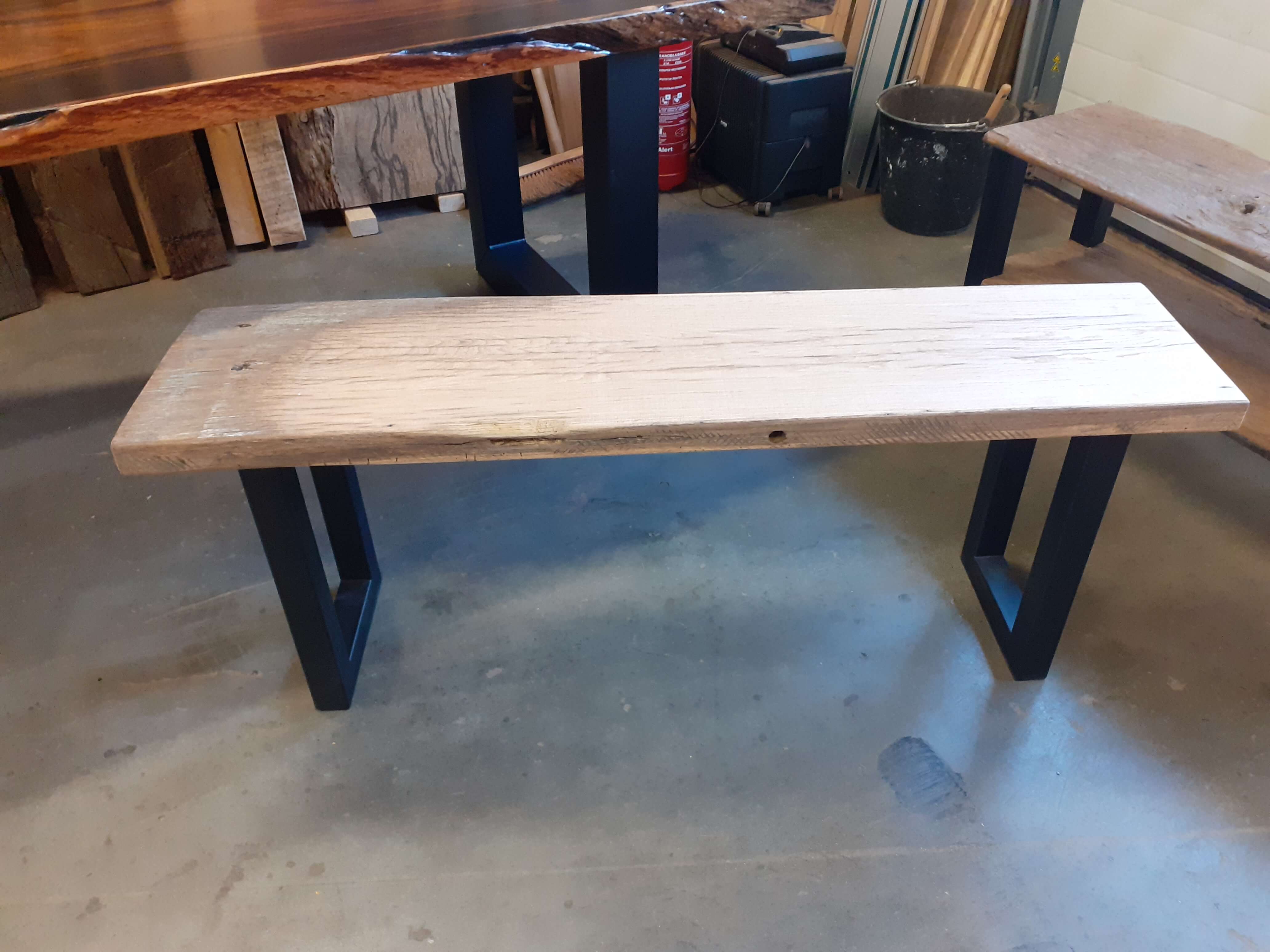 Oud eiken met zwart gecoat onderstel van kwaliteit.